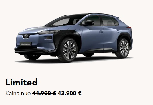 Išankstinis pasiūlymas tiems, kurie renkasi pirmieji. Užsisakykite 2026-ųjų metų SUBARU SOLTERRA ir gaukite 1000 € nuolaidą.